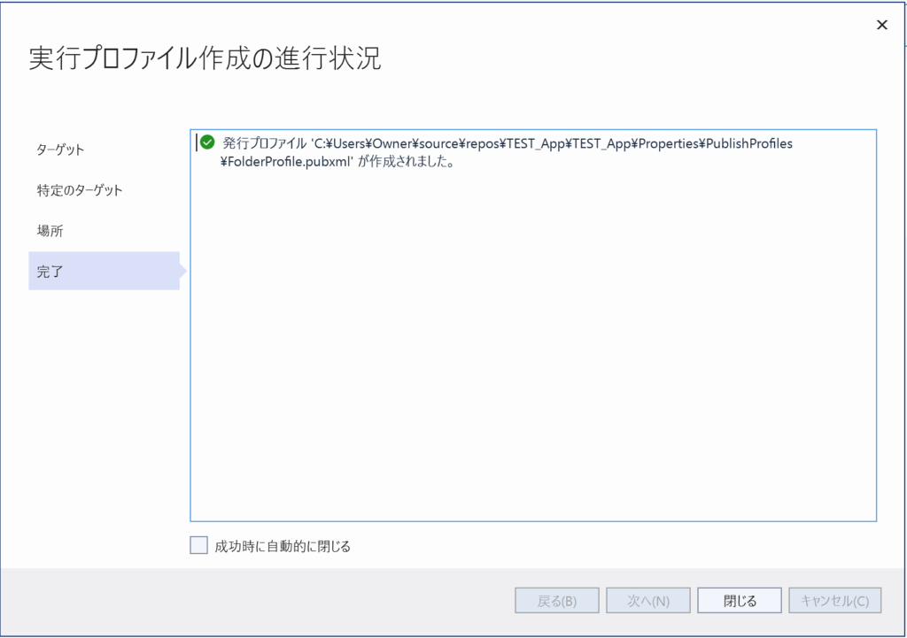 成功すると、上記の画像のようになります。閉じるを押してください。